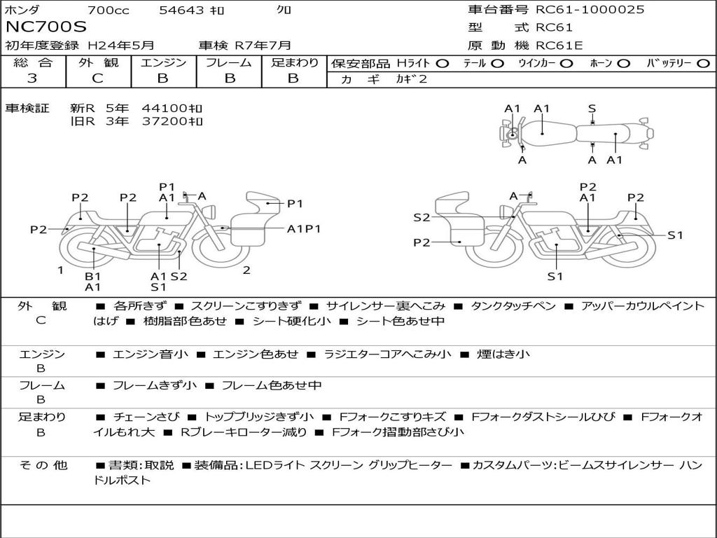 | Номер рамы / VIN | RC61-1000025 |
