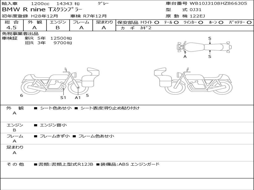 | Номер рамы / VIN | WB10J3108HZ866305 |