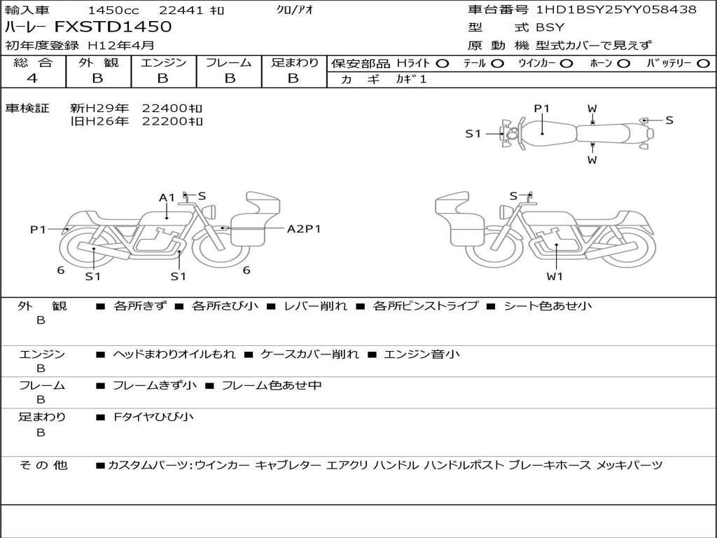 | Номер рамы / VIN | 1HD1BSY25YY058438 |