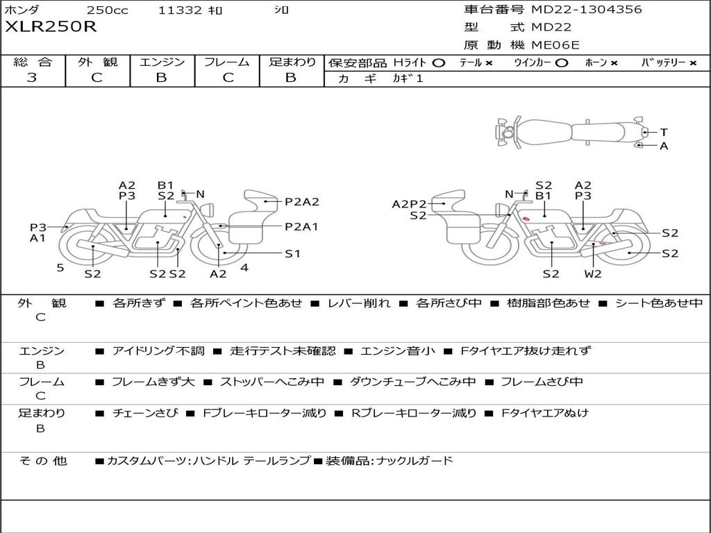 | Номер рамы / VIN | MD22-1304356 |