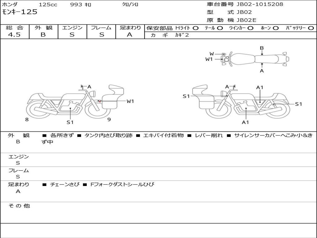 | Номер рамы / VIN | JB02-1015208 |