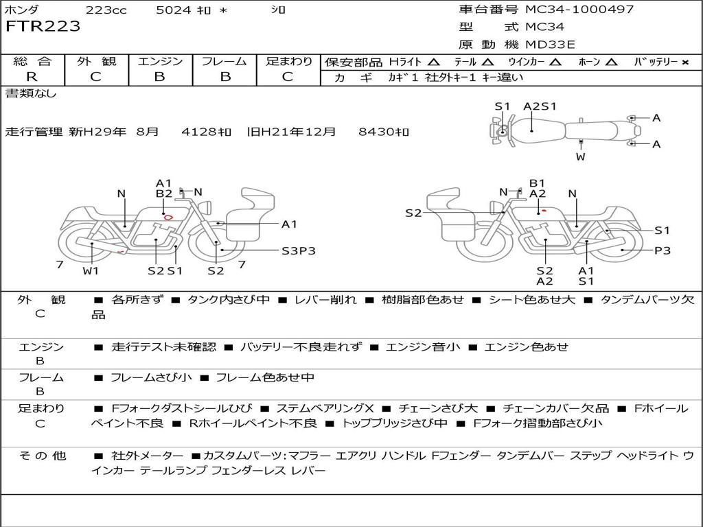 | Номер рамы / VIN | MC34-1000497 |