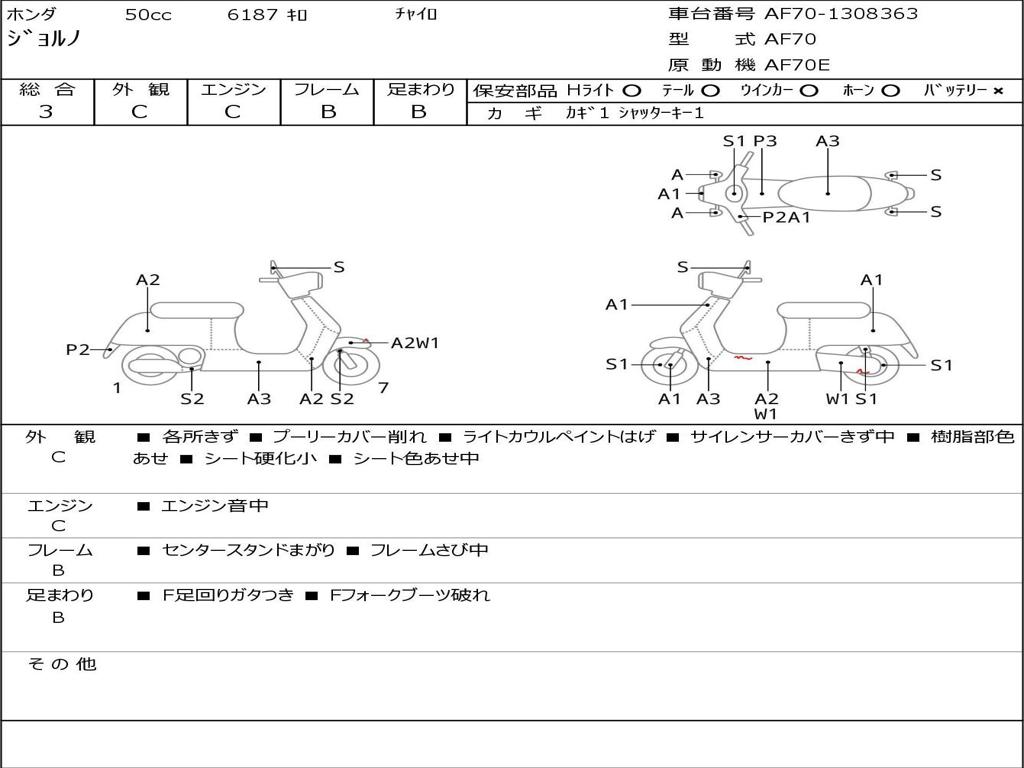 Номер рамы / VIN | AF70-1308363 |