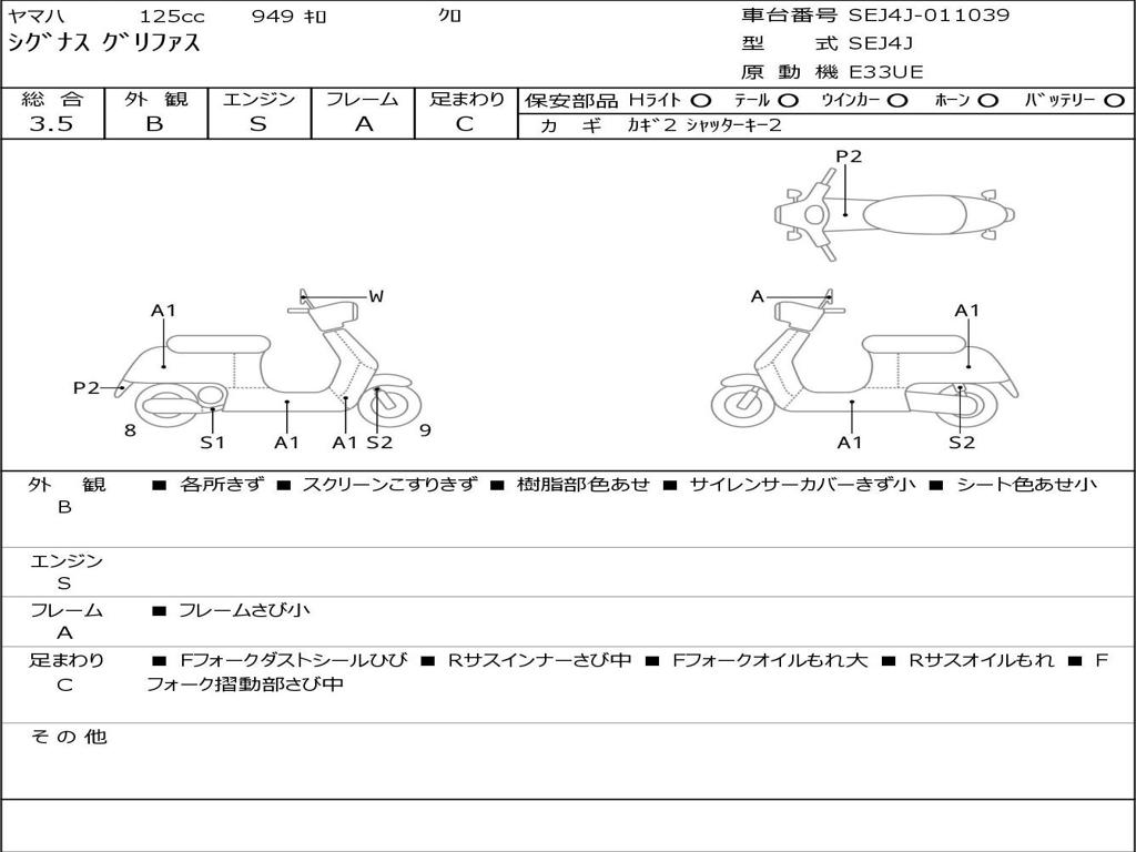 | Номер рамы / VIN | SEJ4J-011039 |