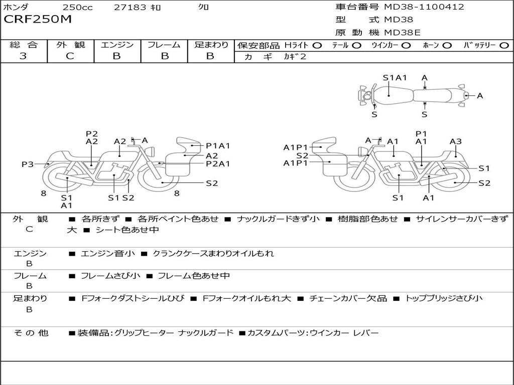 | Номер рамы / VIN | MD38-1100412 |