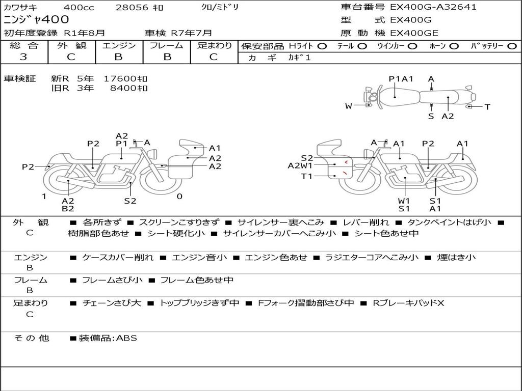 | Номер рамы / VIN | EX400G-A32641 |