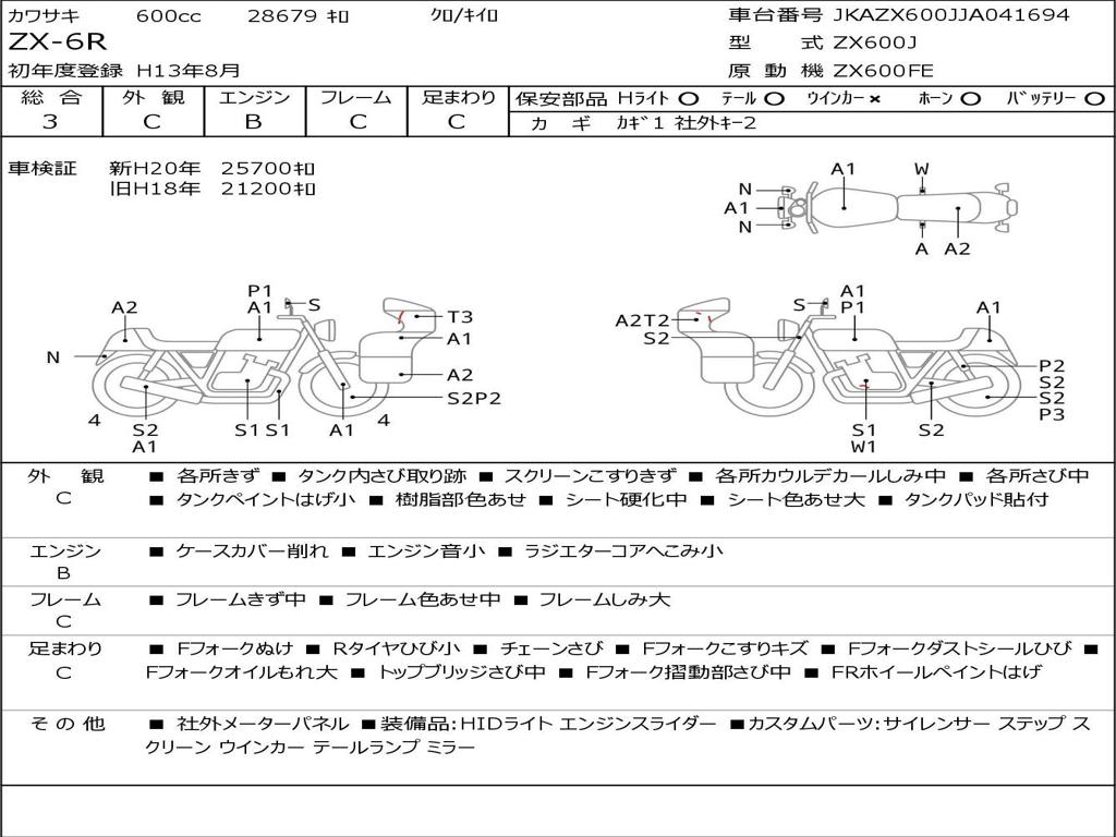 | Номер рамы / VIN | JKAZX600JJA041694 |