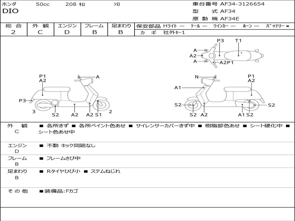 | Номер рамы / VIN | AF34-3126654 |