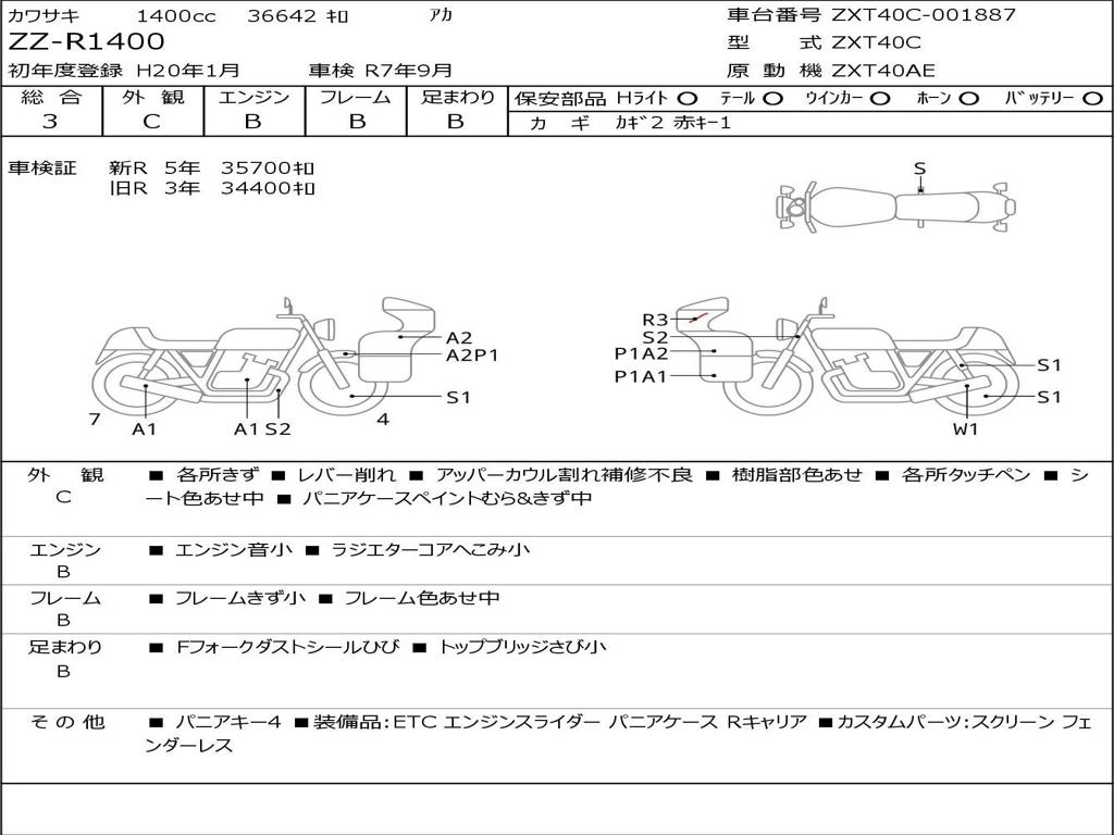 | Номер рамы / VIN | ZXT40C-001887 |