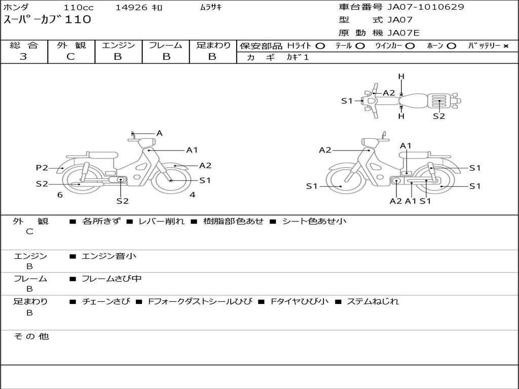 | Номер рамы / VIN | JA07-1010629 |