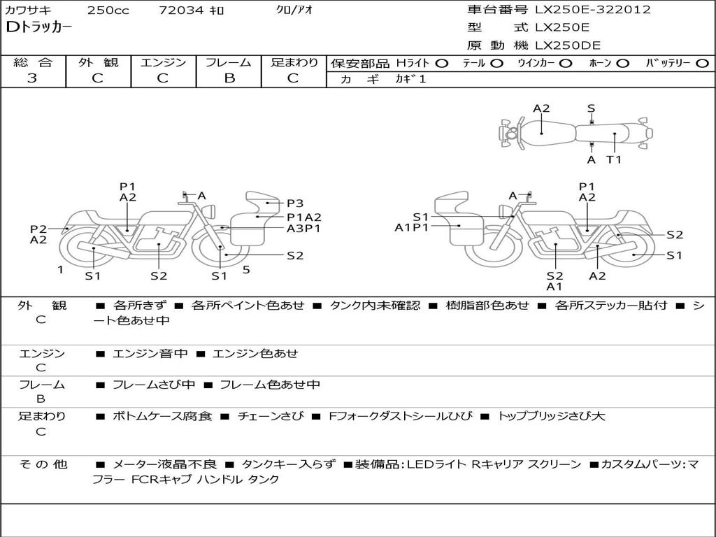 | Номер рамы / VIN | LX250E-322012 |