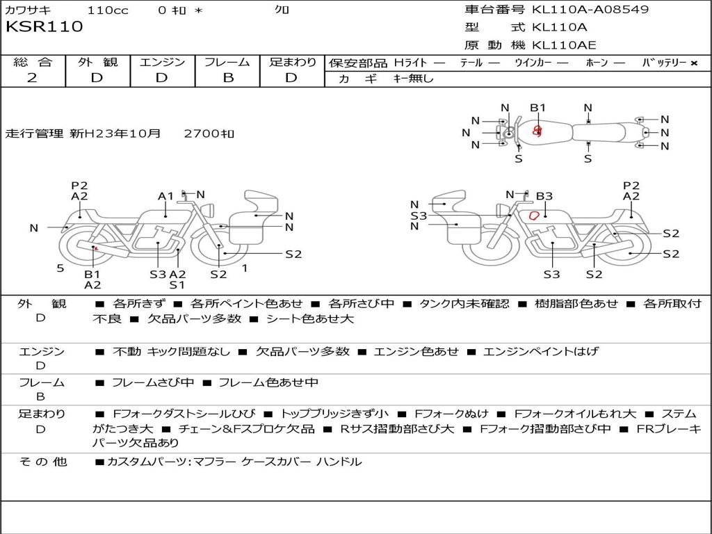 Номер рамы / VIN | KL110A-A08549 |