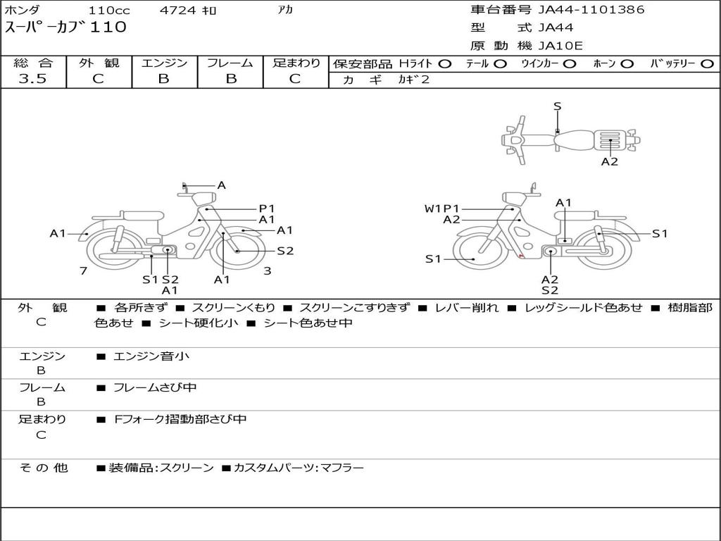 | Номер рамы / VIN | JA44-1101386 |