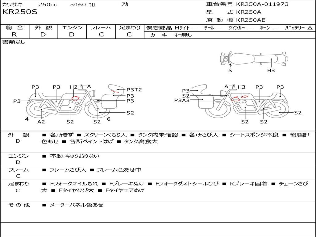 | Номер рамы / VIN | KR250A-011973 |