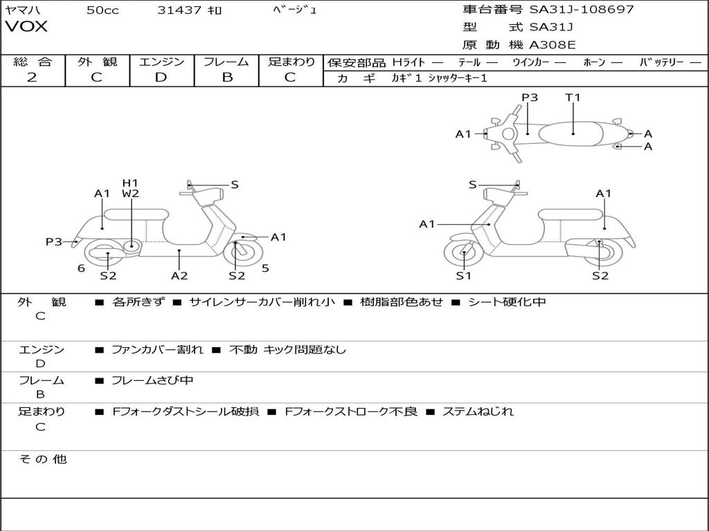 | Номер рамы / VIN | SA31J-108697 |