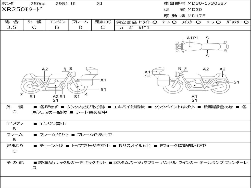 | Номер рамы / VIN | MD30-1730587 |