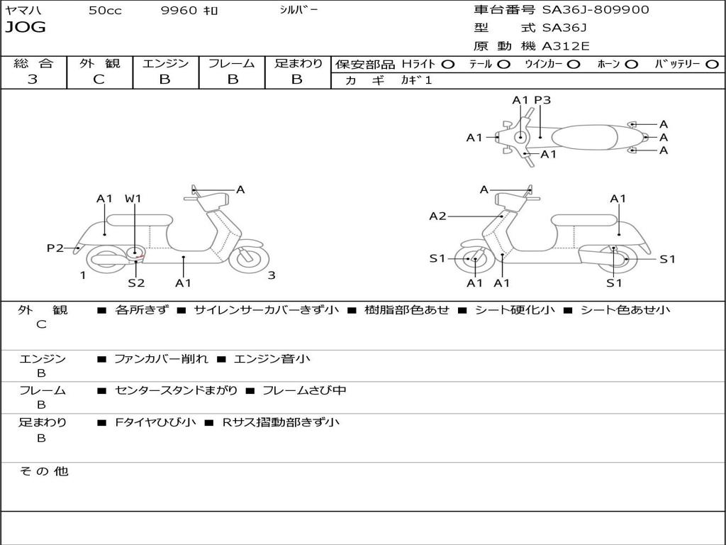 | Номер рамы / VIN | SA36J-809900 |