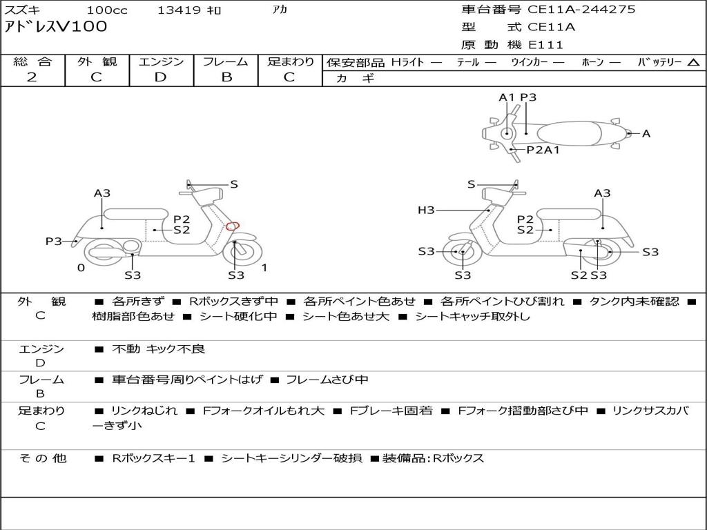 | Номер рамы / VIN | CE11A-244275 |