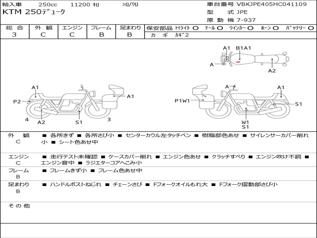 | Номер рамы / VIN | VBKJPE405HC041109 |