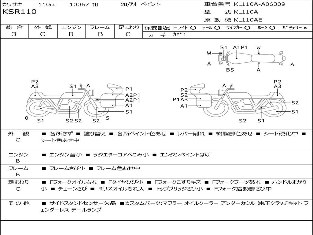 | Номер рамы / VIN | KL110A-A06309 |