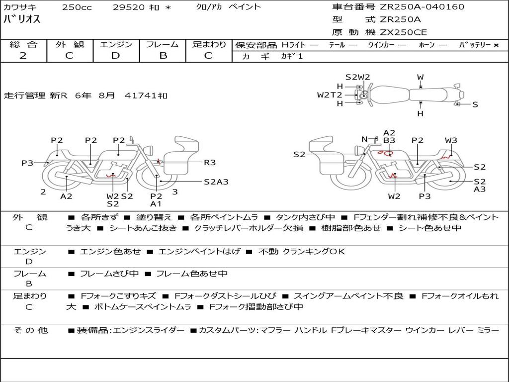| Номер рамы / VIN | ZR250A-040160 |