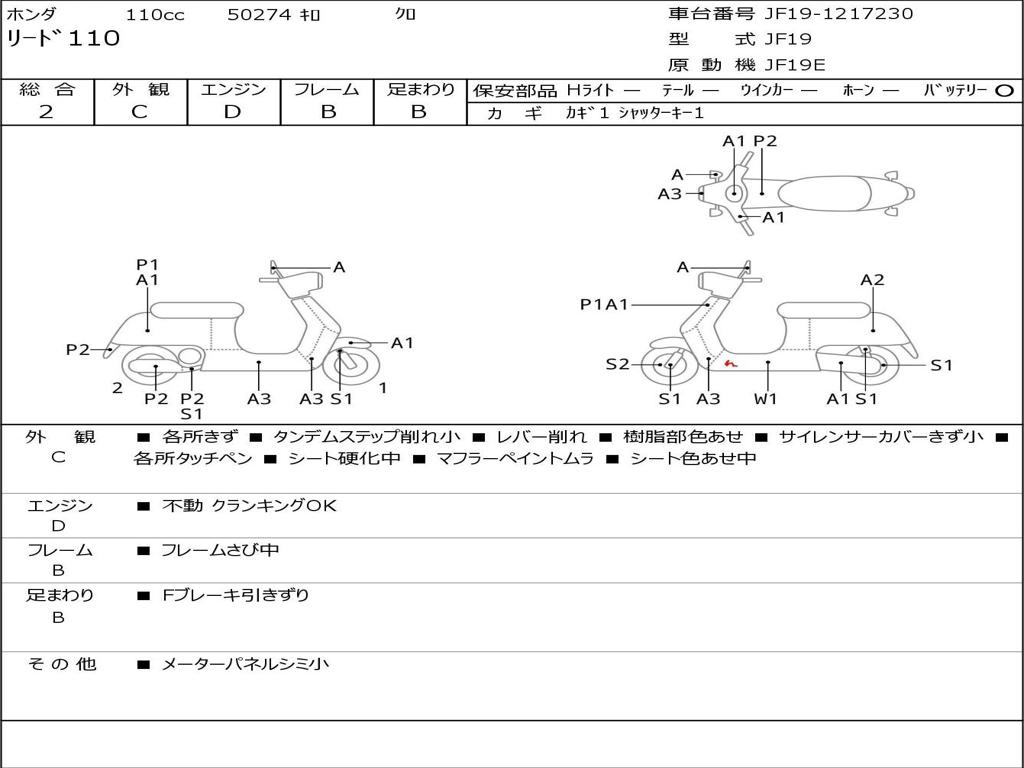 | Номер рамы / VIN | JF19-1217230 |