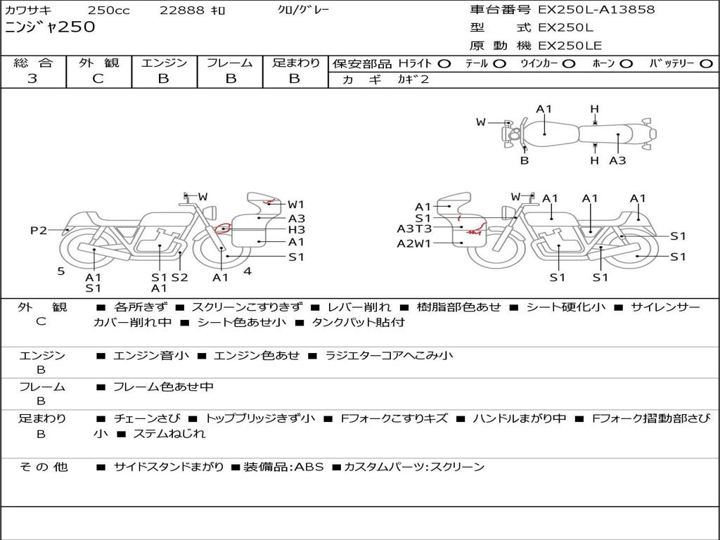| Номер рамы / VIN | EX250L-A13858 |