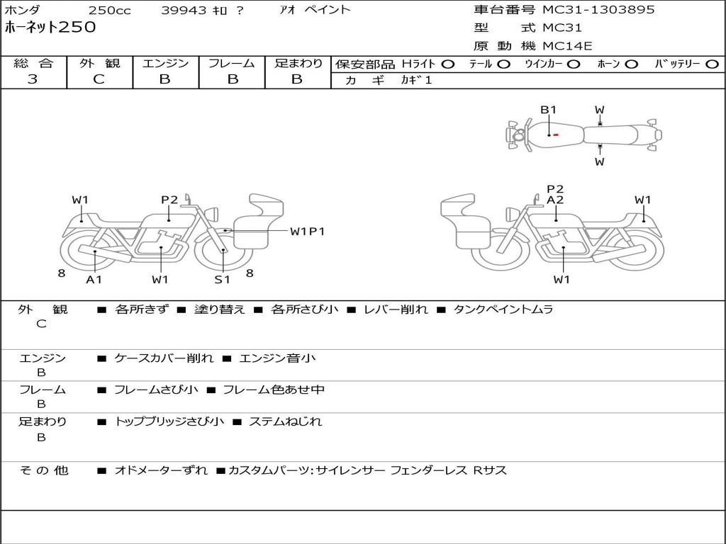 Номер рамы / VIN | MC31-1303895 |
