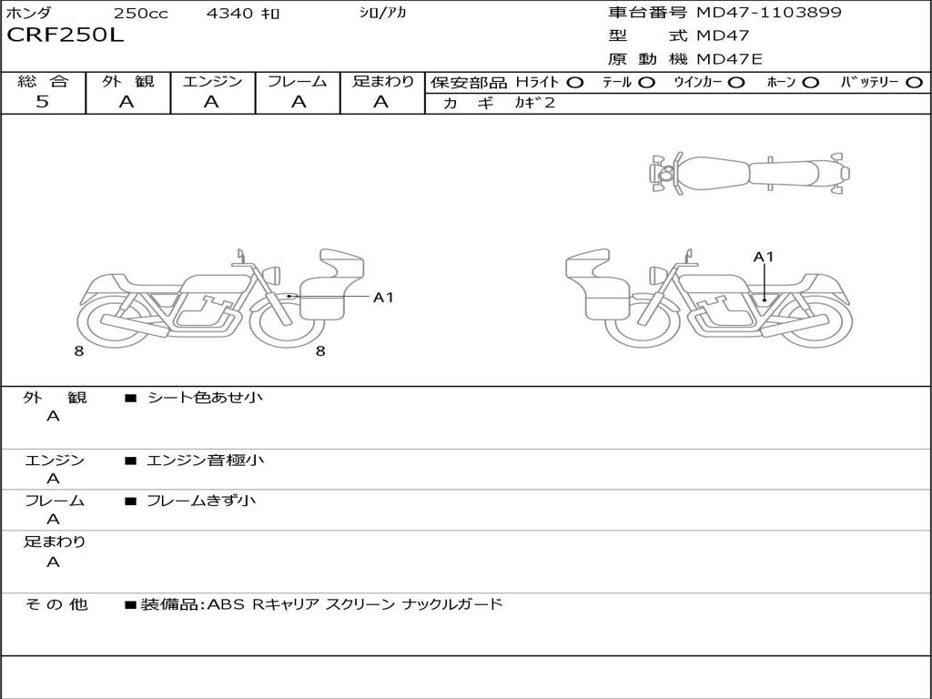 | Номер рамы / VIN | MD47-1103899 |
