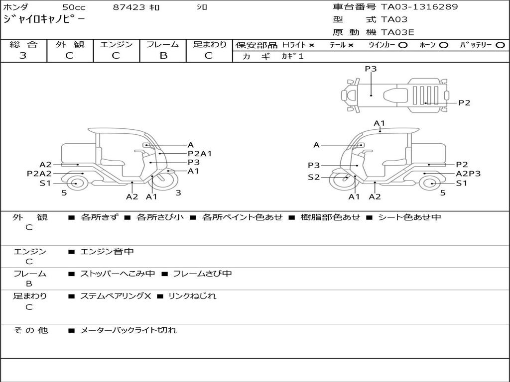 | Номер рамы / VIN | TA03-1316289 |