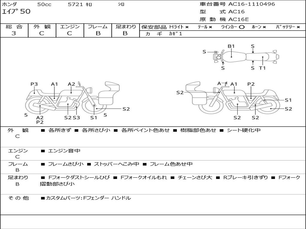 | Номер рамы / VIN | AC16-1110496 |