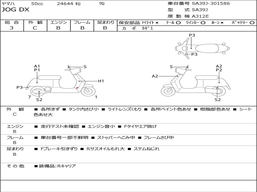 | Номер рамы / VIN | SA39J-301586 |