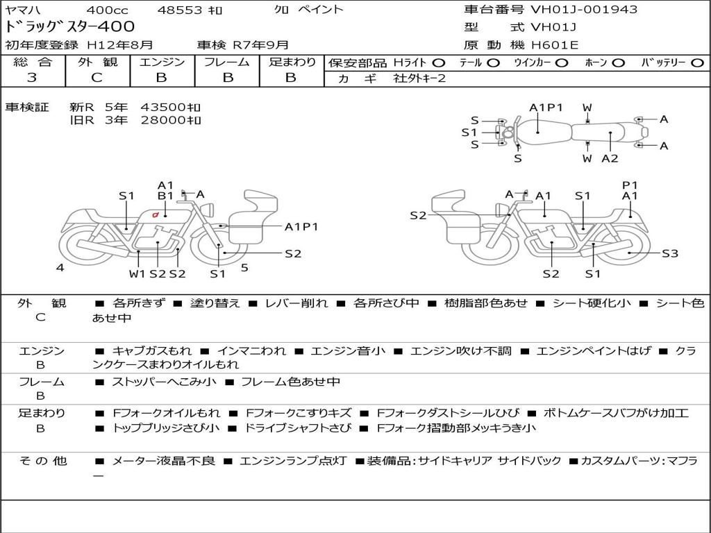 | Номер рамы / VIN | VH01J-001943 |
