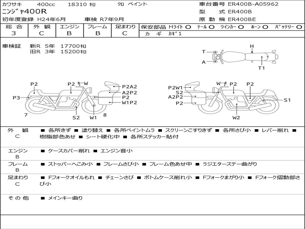 | Номер рамы / VIN | ER400B-A05962 |