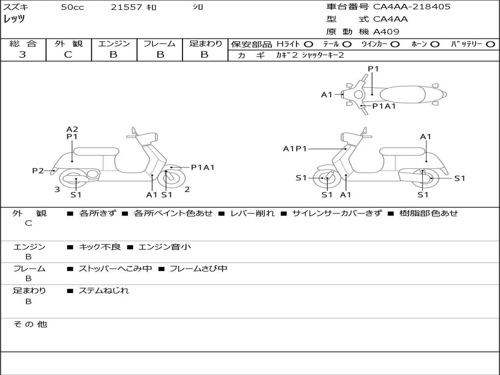 | Номер рамы / VIN | CA4AA-218405 |