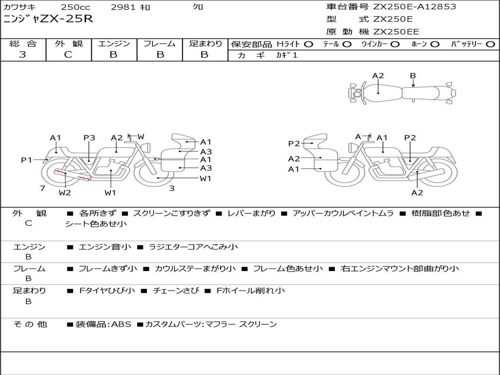 | Номер рамы / VIN | ZX250E-A12853 |