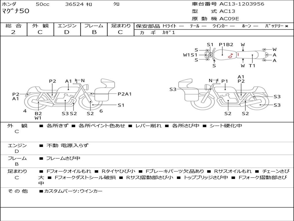 | Номер рамы / VIN | AC13-1203956 |