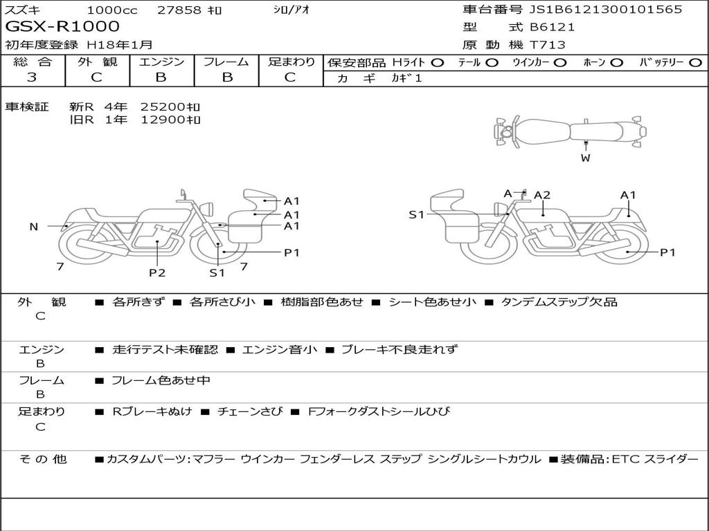 | Номер рамы / VIN | JS1B6121300101565 |