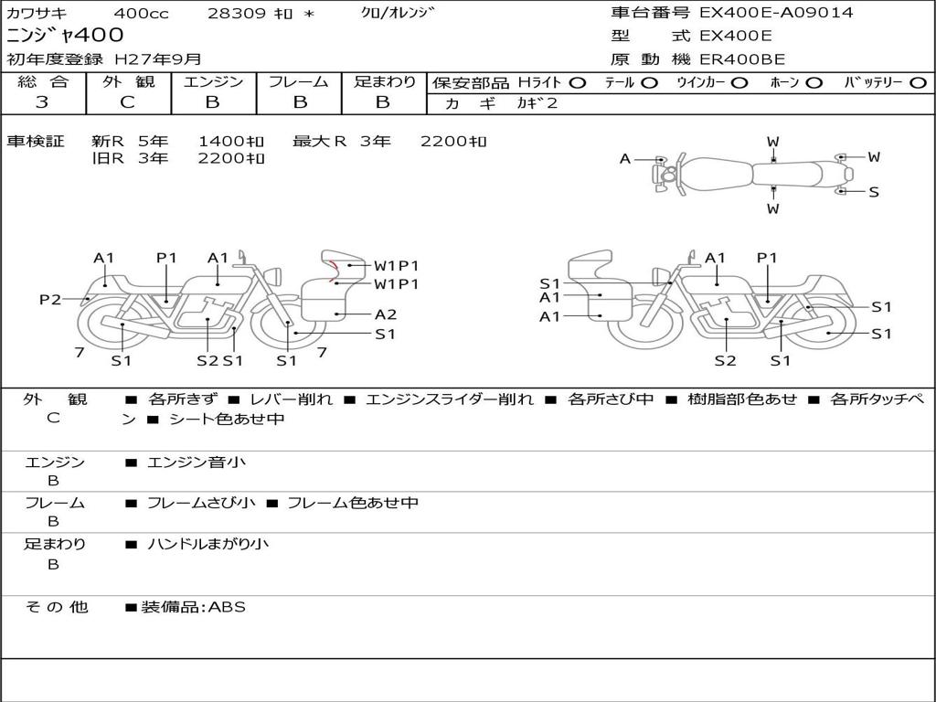 | Номер рамы / VIN | EX400E-A09014 |