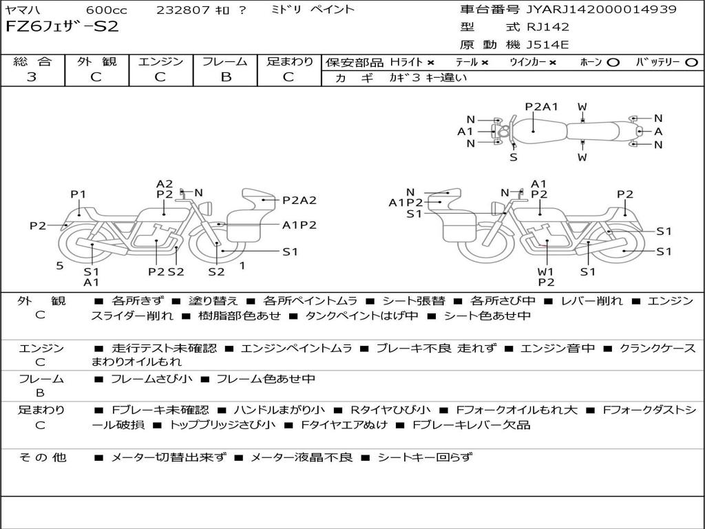 | Номер рамы / VIN | JYARJ142000014939 |