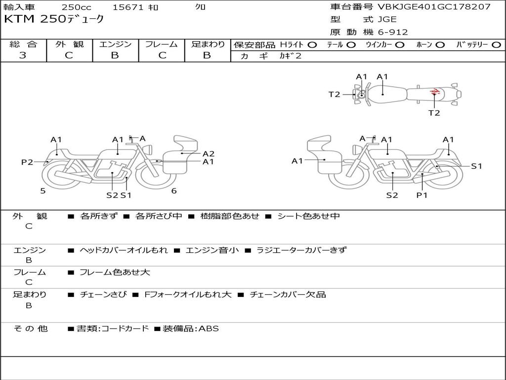 | Номер рамы / VIN | VBKJGE401GC178207 |