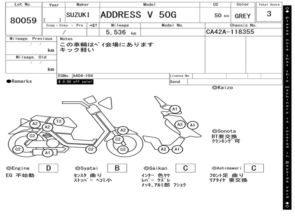 | Аукцион | ARAI BAYSIDE |