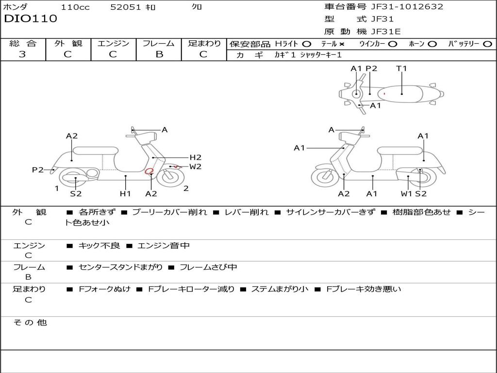 | Номер рамы / VIN | JF31-1012632 |