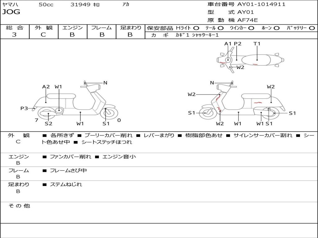 | Номер рамы / VIN | AY01-1014911 |