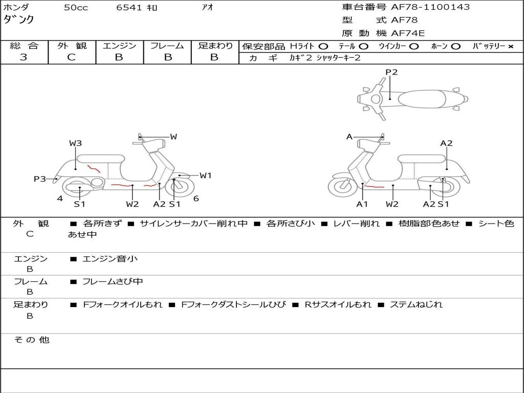 | Номер рамы / VIN | AF78-1100143 |