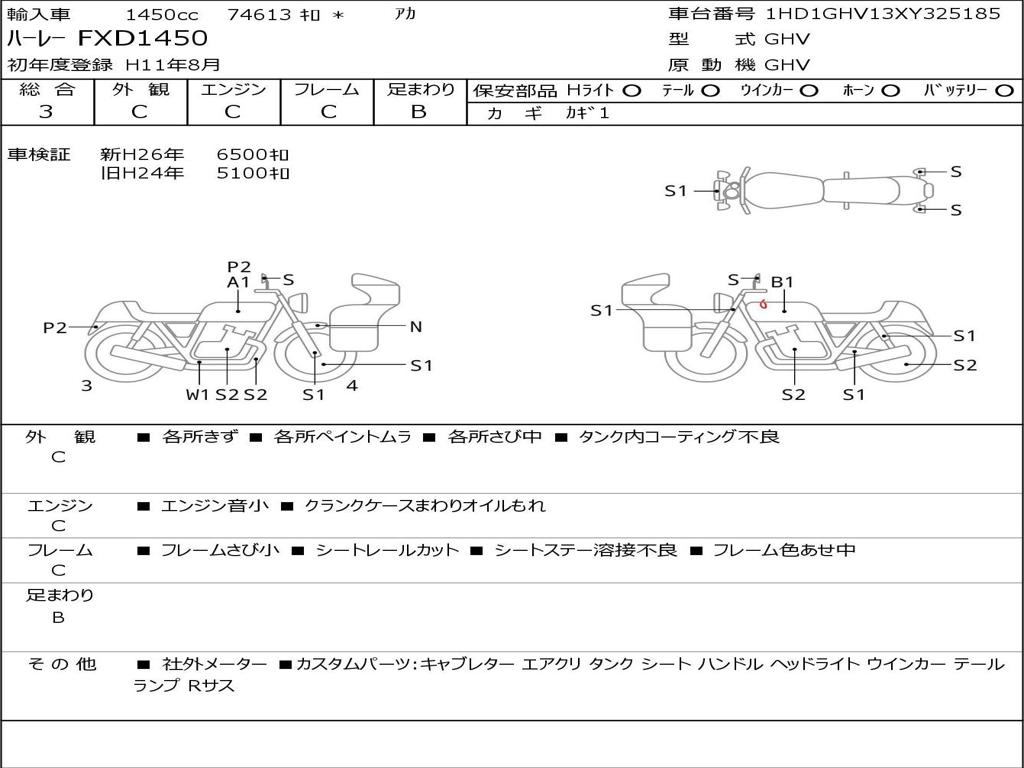 | Номер рамы / VIN | 1HD1GHV13XY325185 |