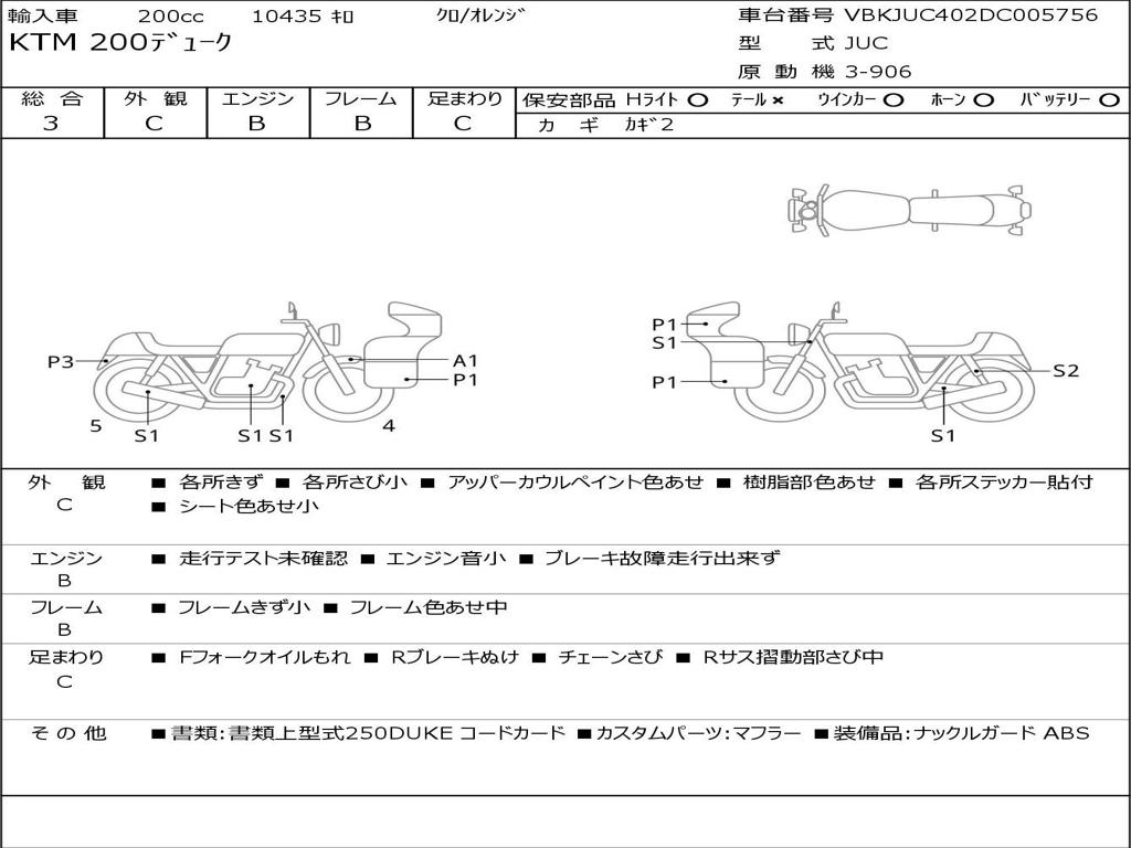 | Номер рамы / VIN | VBKJUC402DC005756 |