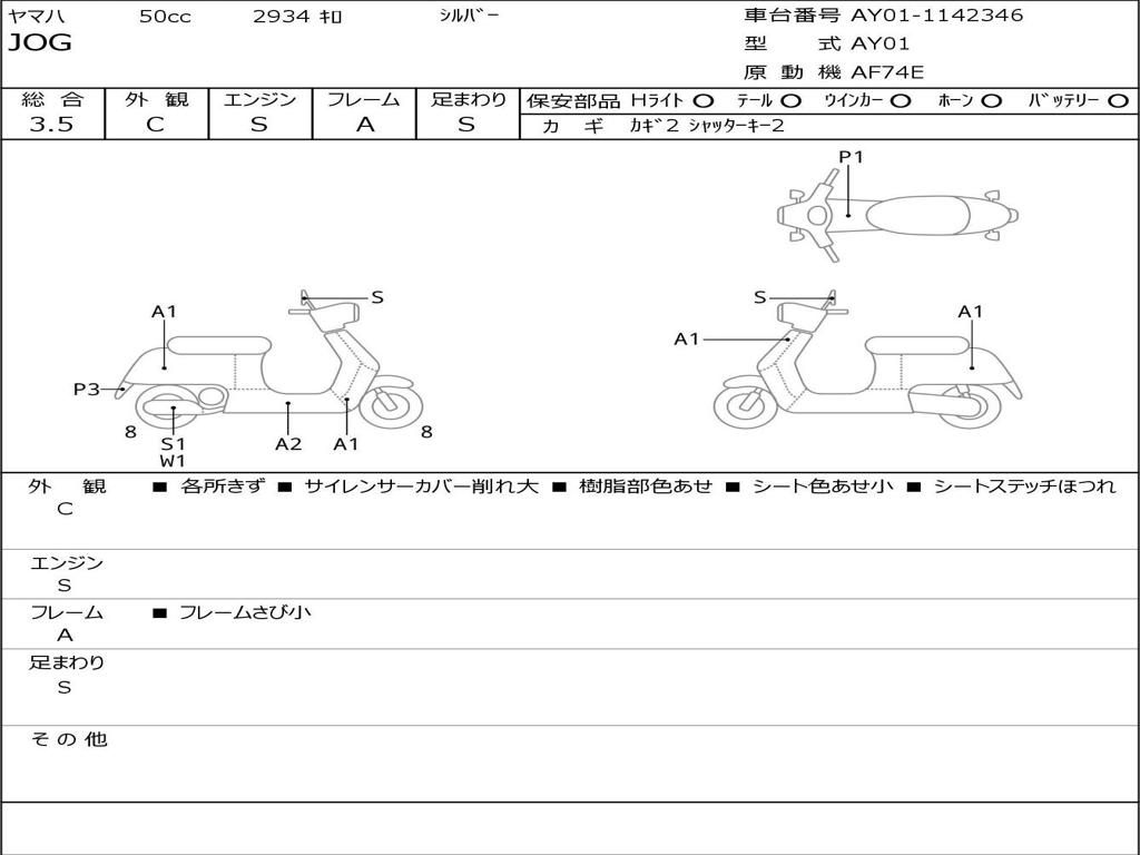 | Номер рамы / VIN | AY01-1142346 |