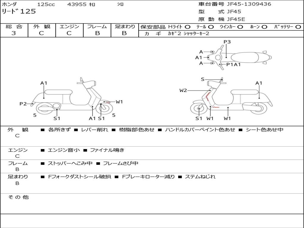 | Номер рамы / VIN | JF45-1309436 |