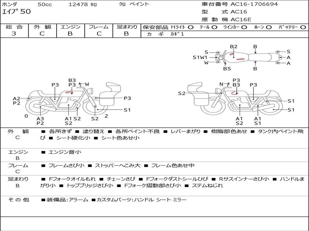 | Номер рамы / VIN | AC16-1706694 |